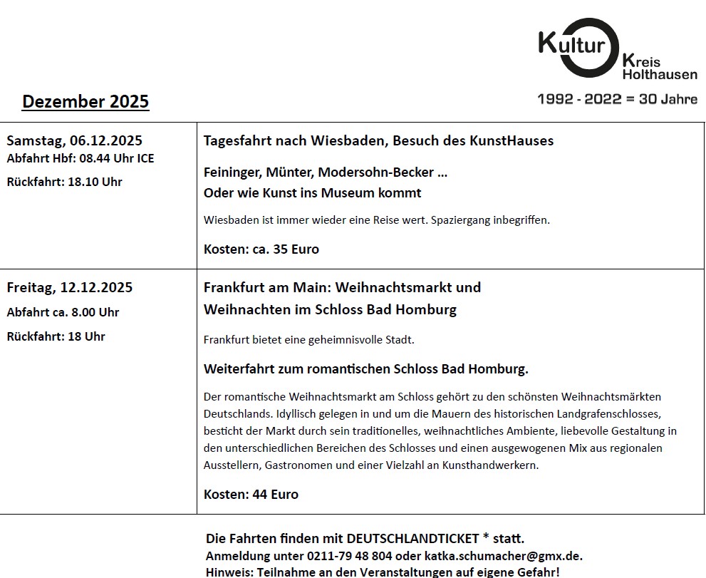 Hier finden Sie wieder die neuen Termine des Kulturkreises Holthausen.