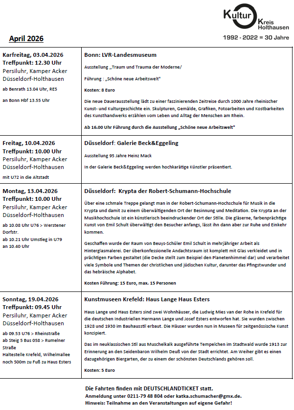 KulturKreis Holthausen | Alle Termine für März und April 2026